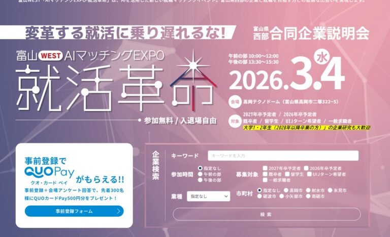 富山WEST「AIマッチングEXPO-就活革命-」参加します!