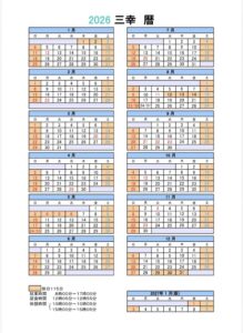 2026年 営業カレンダー